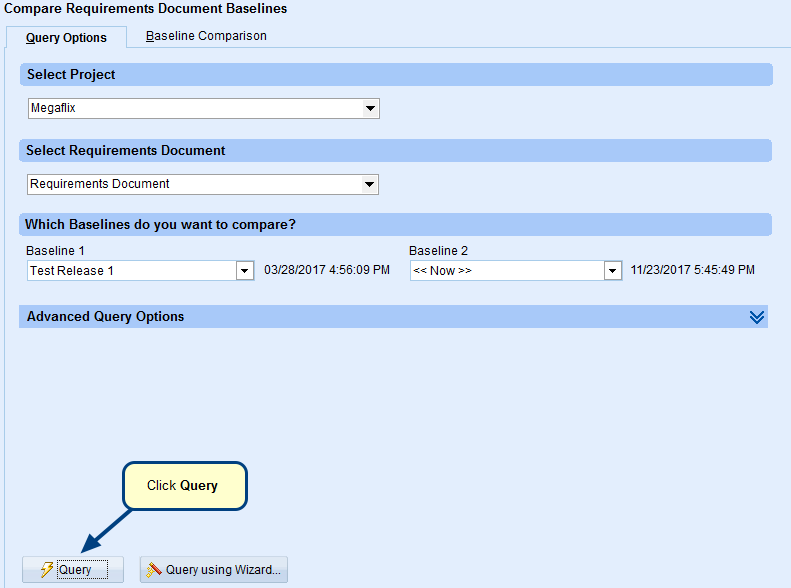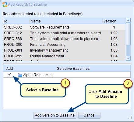 NOTE: Complete Baseline includes all records, whereas, Selective Baseline includes only selected records of a Project.
