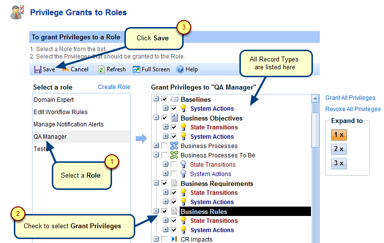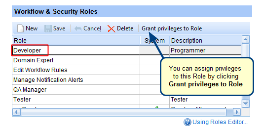 Step 1. Click Grant Permissions to Roles (Groups) to open its editor