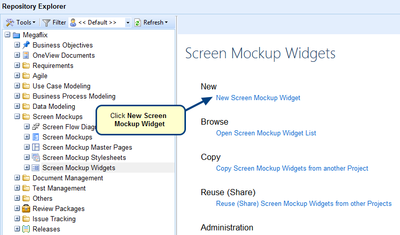 NOTE: You can also create new requirements and link them to widgets on the Screen Mockup.