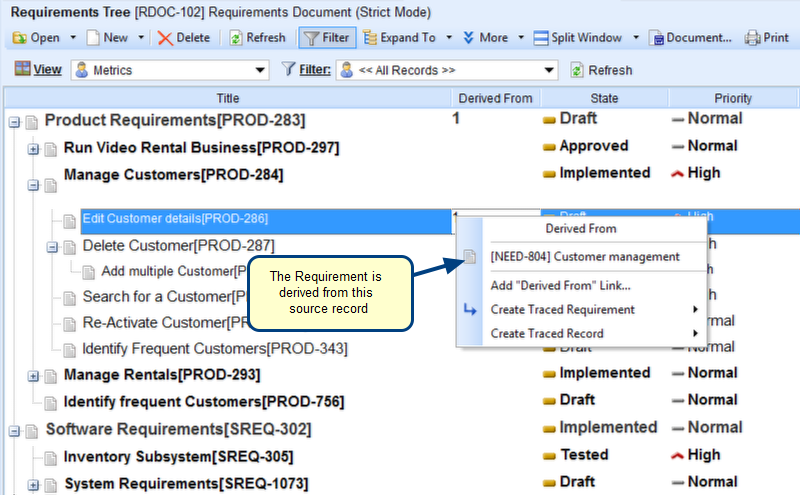 - Visualize end-to-end traceability for records in a project
