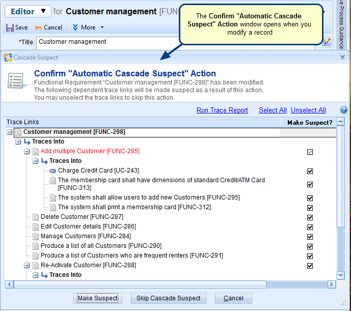 Step 1. TopTeam avoids traceability inconsistency by allowing only legal links to be created as defined in traceability rules by users