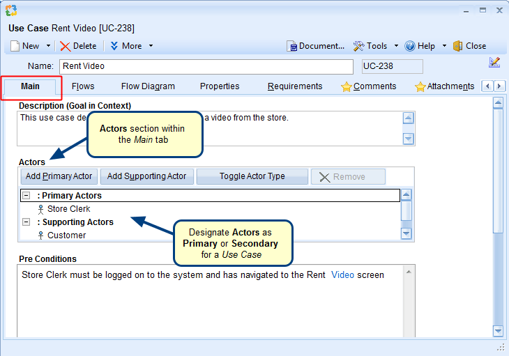 - Viewing Use Case Scenarios record type in the repository
