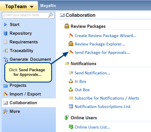 The Approvals tab is located inside a Review Package record’s editor. Approvals related to a Review Package are listed in this tab.
