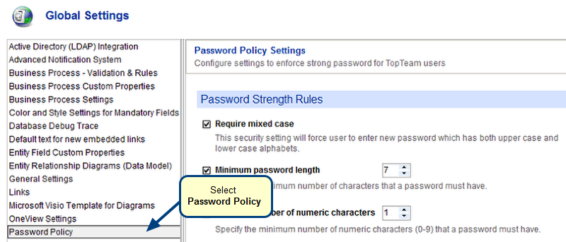 Enhancing TopTeam security using Password Policy