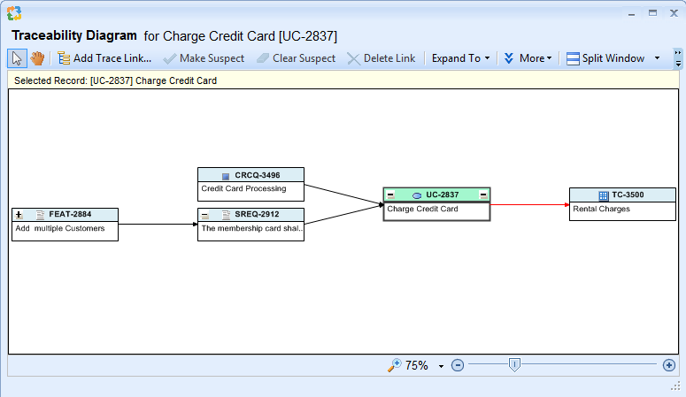 - View and edit Trace Links between two sets of requirements in a row vs. column format.