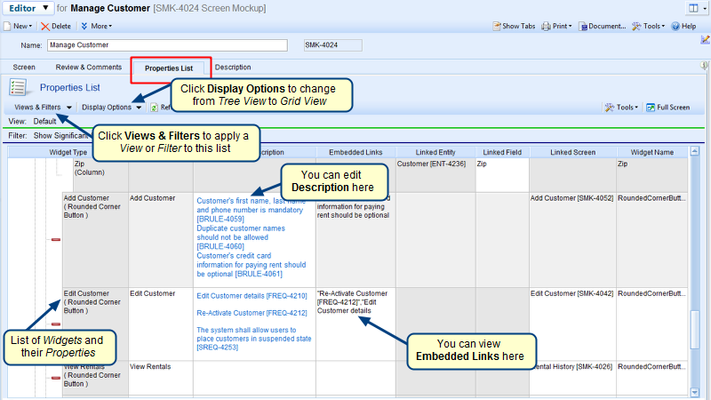 Step 1. View all comments in a Screen Mockup record in Properties panel
