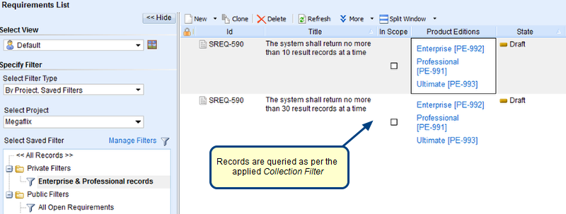 This article describes the procedure for creating and applying a Relational Filter to query Collection records in any List/Tree editor.