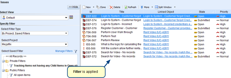 Step 11. Newly created Relational Filter displays in the Manage Filters window. Apply the filter.