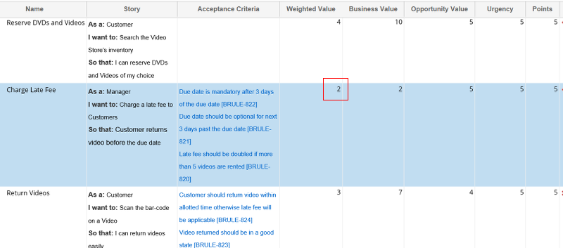 Backlog items are ranked by Weighted Value